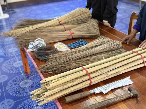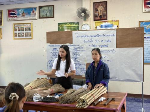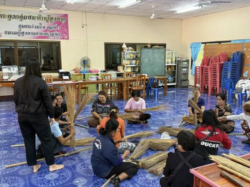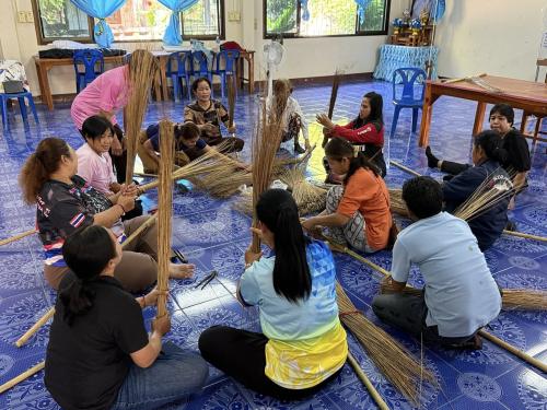 - ฝึกอาชีพตามความต้องการของกลุ่มเป้าหมาย โดยการสาธิตและฝึกอาชีพการทำไม้กวาดทางมะพร้าว